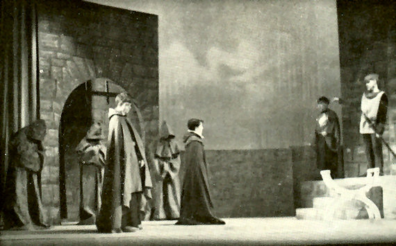 In March the school produced "Richard of Bordeaux". Drama had been revived in the school the previous year with Terence Rattigan's "Adventure Story". The major challenge of the latter play had been the great length of the leading part. The producers, Mr. Tufnell and Mr. Crawford, had decided that despite the success of C. Clubbe as Alexander, they would in future choose plays with less exacting leading parts. However, they somehow arrived at Richard of Bordeaux, in which the title role was even longer than that of Alexander. With some trepidation, the producers asked Edward O'Gorman to undertake the part. There was some cause for trepidation; he was only a fourth-former, he looked very young, he was not very tall, he had only acted once before. He was being asked to undertake a part created by Sir John Gielgud. On the face of it, it seemed most absurd. However, the fears proved unjustified, for O'Gorman made a very creditable attempt at a difficult and exhausting part.