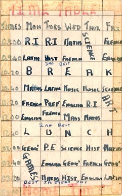 ![]() This is a scan of a timetable written out in my first year at Salvatorian (66-67).